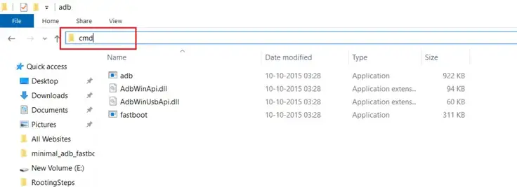 4. Ora apri CMD digitando “cmd” sulla barra degli indirizzi e premi Invio come mostrato nello screenshot qui sotto.
