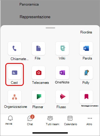 - Selezionare la voce Cast dove verranno mostrate le chat aperte in Teams nelle vicinanze