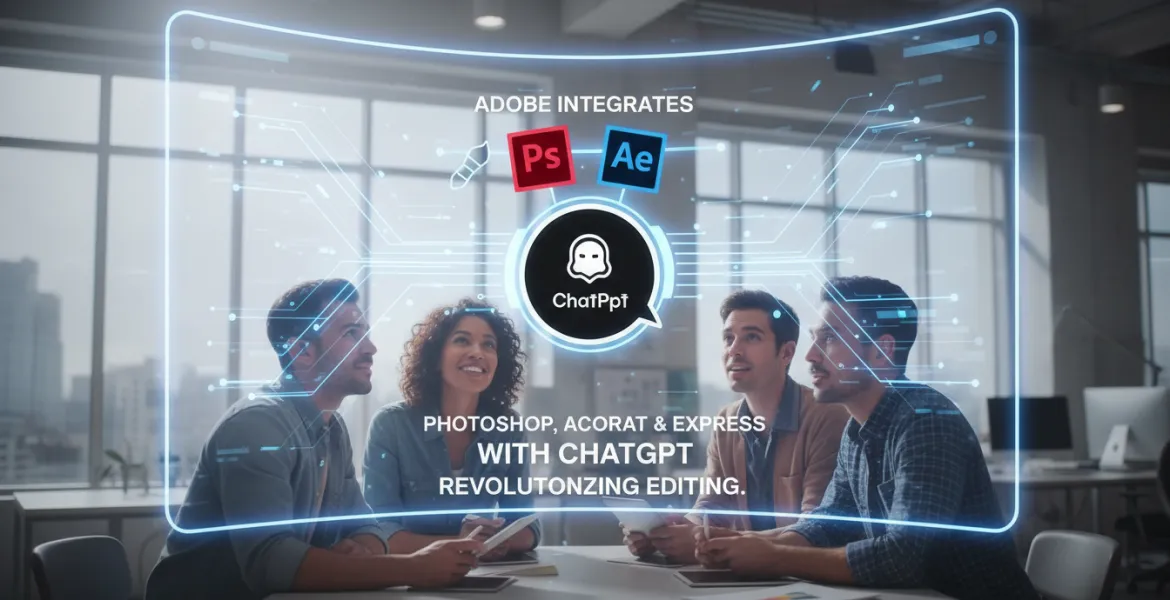 Scopri come Adobe integra Photoshop, Acrobat ed Express in ChatGPT, permettendo di modificare immagini, PDF e progetti grafici direttamente nella chat