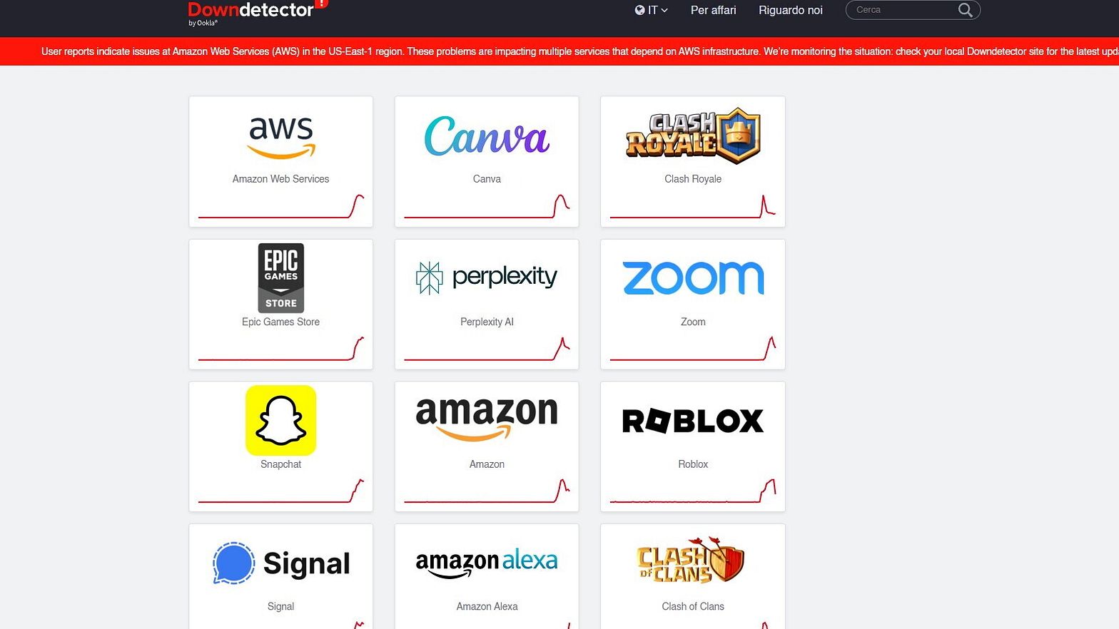 Pazzesco, Amazon AWS Down!!! Fuori servizio Agenzia delle entrate, Canva, Zoom, Roblox e molti altri servizi
