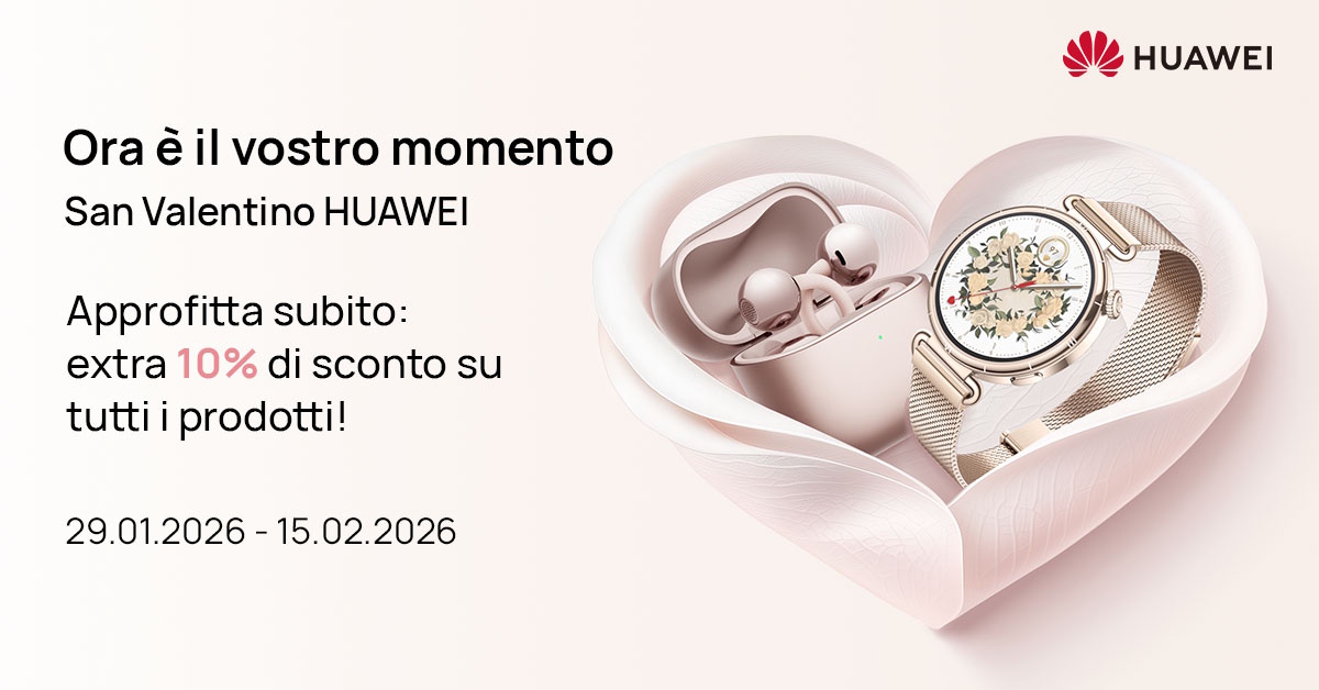 Per scoprire tutte le promozioni Huawei dedicate a San Valentino e attive fino al 15 febbraio, visita Huawei Store e consulta https://consumer.huawei.com/it/offer/