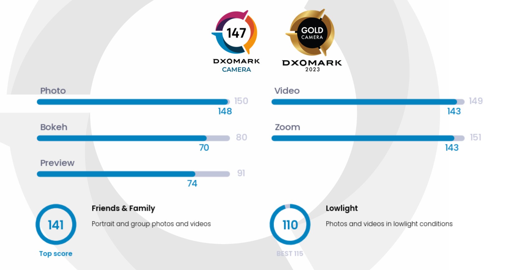 DxOMark ha assegnato il punteggio di 147 al Pixel 7 Pro, che è primo in classifica, condiviso con Honor Magic 4 Ultimate, e battendo iPhone 14 Pro (che si ferma dietro ad un solo punto con 146). Il Google Pixel 7 Pro in pratica primeggia in tutte le analisi fatte da DxOMark.