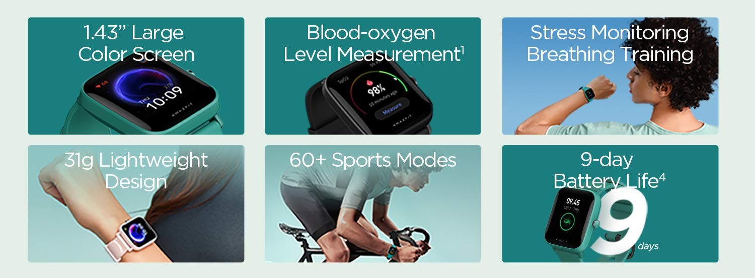 Esteticamente è identico all’Amazfit Bip S con la cassa squadrata in plastica, ma è leggermente più grande per via del display più generoso. Infatti si dagli 1,28 pollici di Bip S agli 1,43 pollici con risoluzione 302×302 pixel di Bip U. Il peso però è sempre di 31 grammi con caratteristiche che promettono davvero di tutto pur contenendo il prezzo.