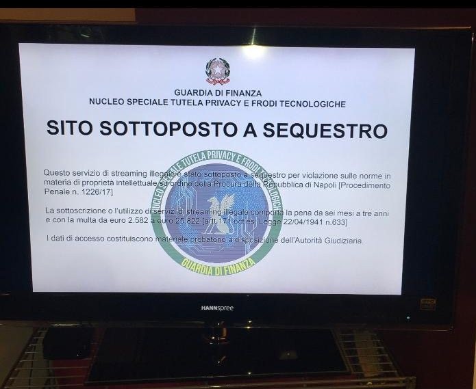 Sottoposte a sequestro per violazione sulle norme di proprietà intellettuale su ordine della Procura della Repubblica di Napoli. La sottoscrizione o l’utilizzo di servizi di streaming illegale comporta la pena da sei mesi a tre anni e la multa da euro 2.582 a euro 25.822. I dati di accesso costituiscono materiale probatorio a disposizione dell’Autorità Giudiziaria